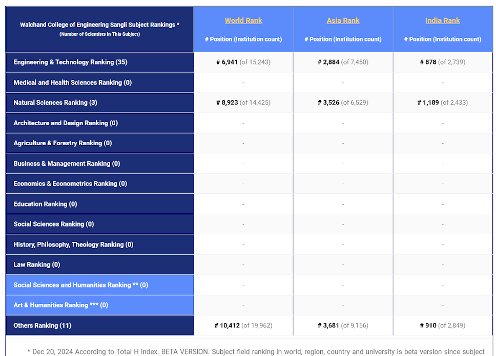 Faculties listed in AD Scientific Index